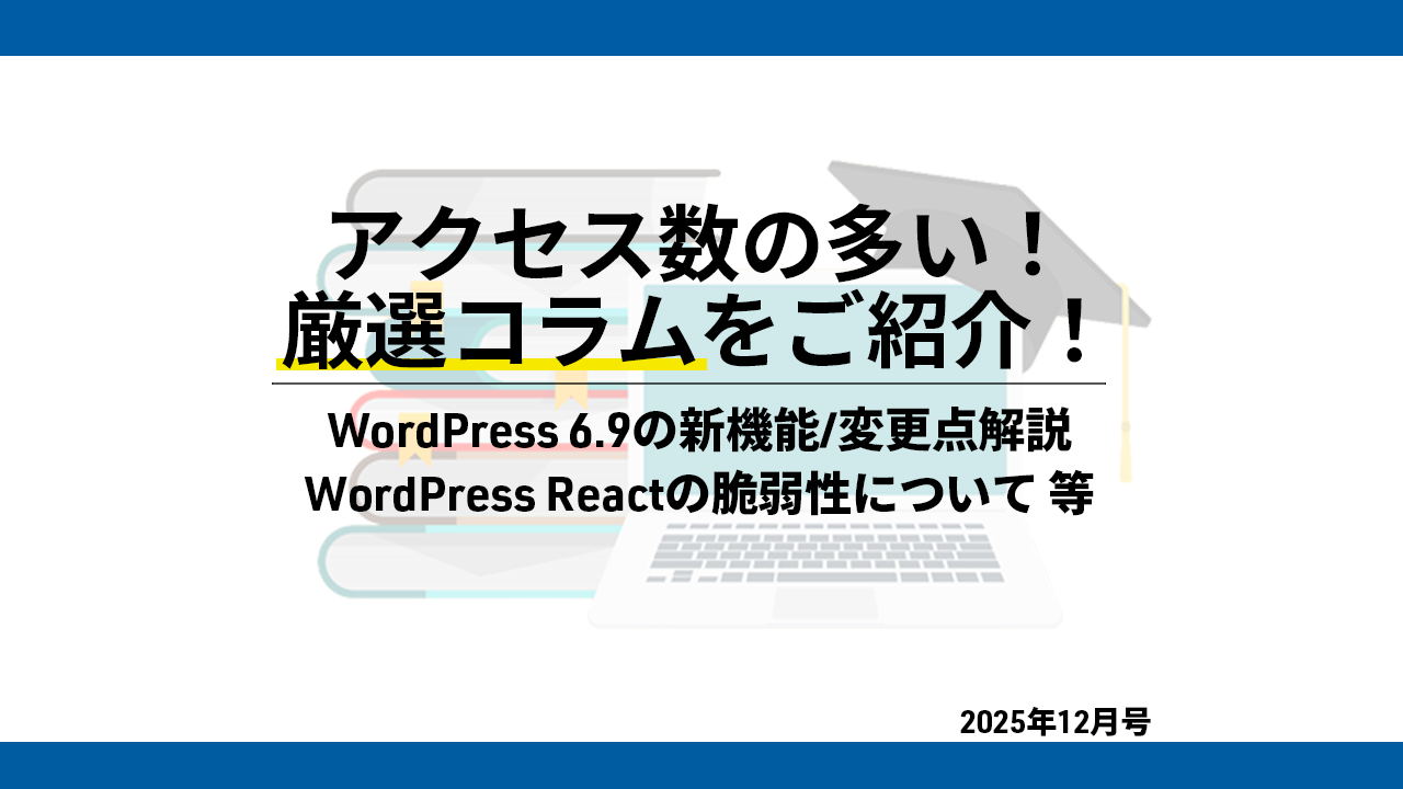 WordPress 6.9の新機能/変更点解説・WordPress Reactの脆弱性について 等 アクセス数の多い人気コラムをご紹介!【プライム・ストラテジー】