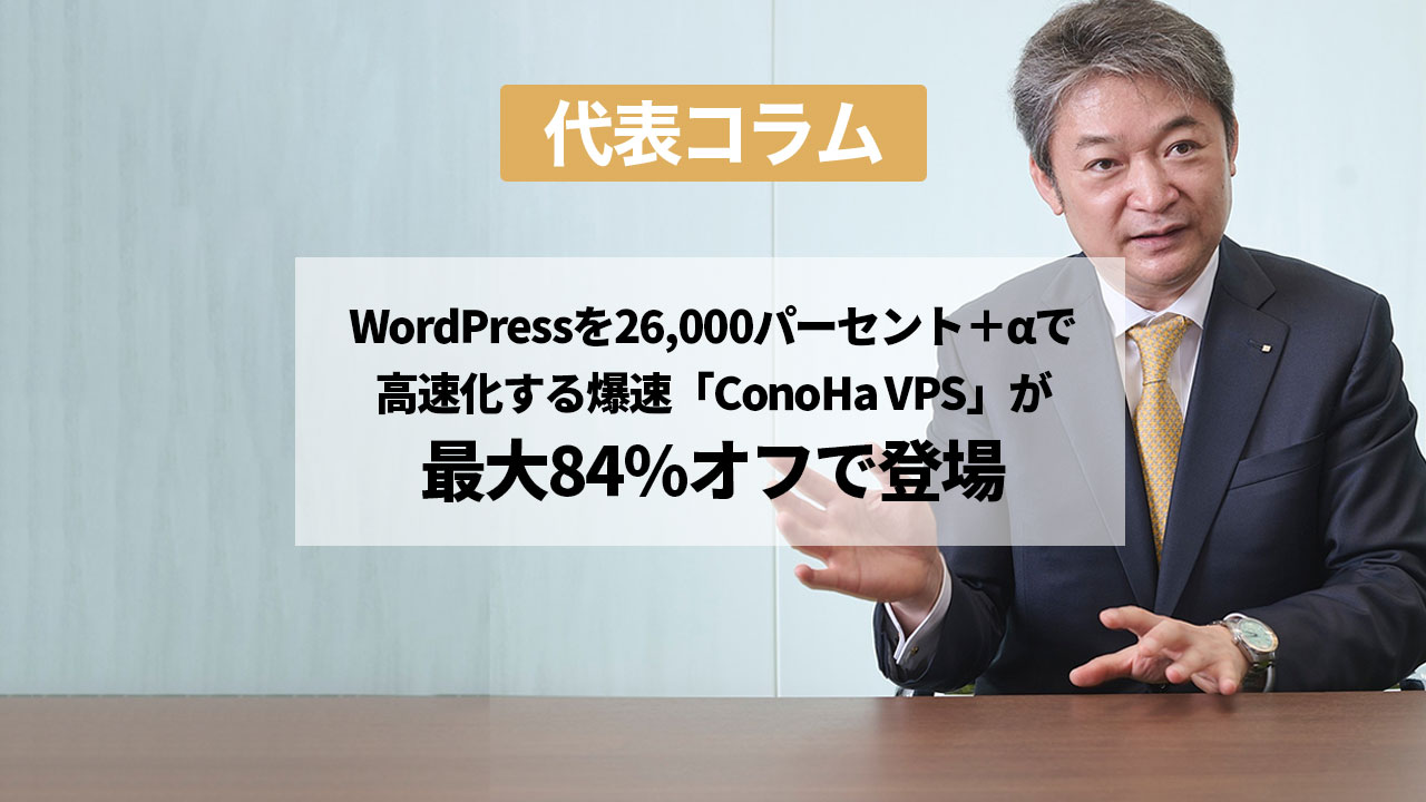 WordPressを26,000パーセント+αで高速化する爆速「ConoHa VPS」が最大84%オフで登場