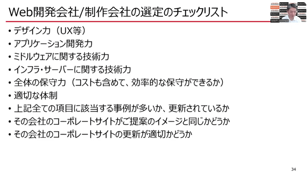 今回ご紹介するセミナーは良いWeb開発会社 / 制作会社の見分け方 ~間違わないためのチェックリストとの成功例の解説~です。