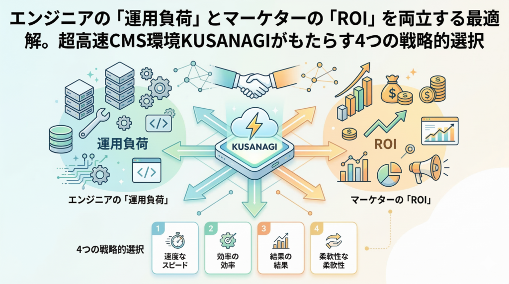 テクノロジーは、ビジネスの目的を達成するための「手段」です。しかし、その手段が強力であればあるほど、マーケティングの可能性は広がります。KUSANAGIは、エンジニアの「運用の平穏」と、マーケターの「成果の最大化」を同時に叶えるプラットフォームでありたいと考えています。