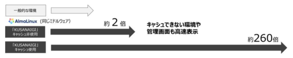 - ここで登場するのが「拡張プロダクト」としてのKUSANAGIです。CMSに最適化され、世界最速クラスの表示速度と強固なセキュリティを提供する実行環境は、単に「サイトが表示されればよい」という期待を超越します。表示速度の向上は、SEO効果の最大化(Googleの評価向上)や、コンバージョン率の改善(ユーザー体験の最適化)といった、ビジネス成果に直結するマーケティング上の価値を提供します。