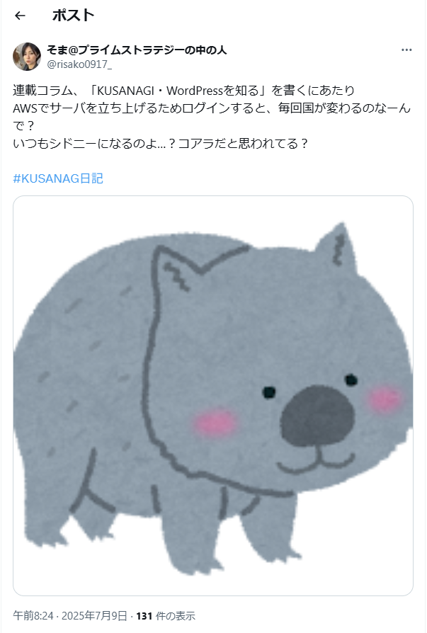 なぜ私がAWSを開くとシドニーになるのか?というXを投稿していました。