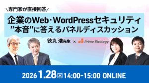 - 対象の方:特にWordPressサイトを管理運営している、Webサイト担当者様/責任者様、情報システム部門担当者様/責任者様、DX系部署の担当者様/責任者様、本内容にご興味を持っていただいた方