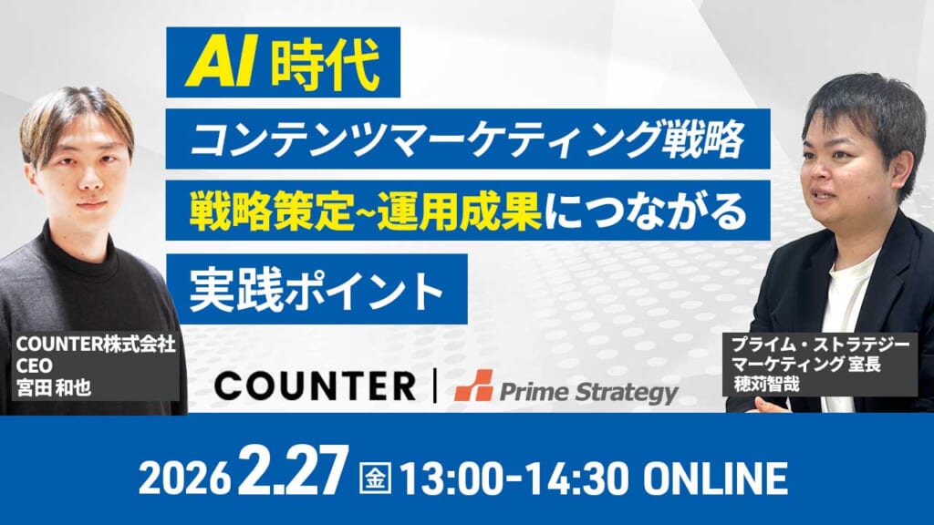 - 13:05〜13:50:第1部 COUNTER株式会社「AI時代のコンテンツマーケティング戦略 〜戦略策定から運用まで、成果につなげる実践ポイント〜」