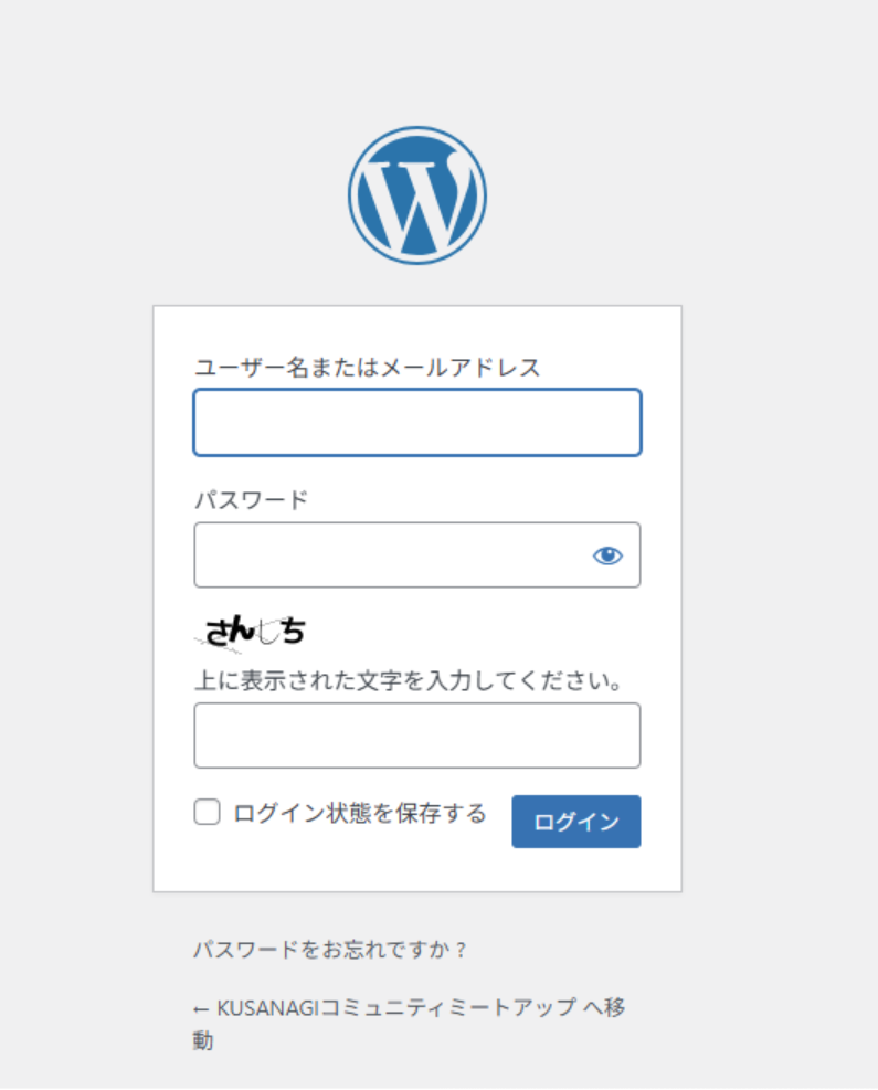 すると、WordPressのログイン画面が出てきます。ここに、「WordPressかんたんセットアップ」時に登録した「ユーザー名」「パスワード」を入力します。