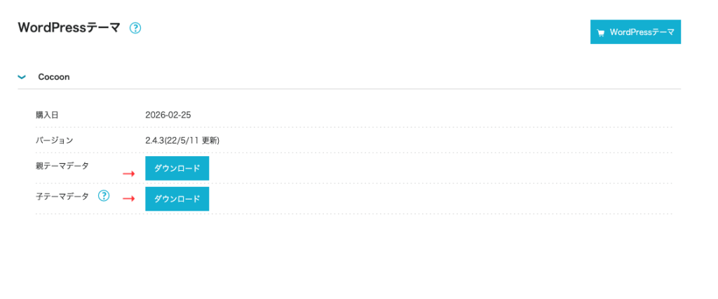 ここで、「親テーマ・子テーマ両方共」ダウンロードします。
