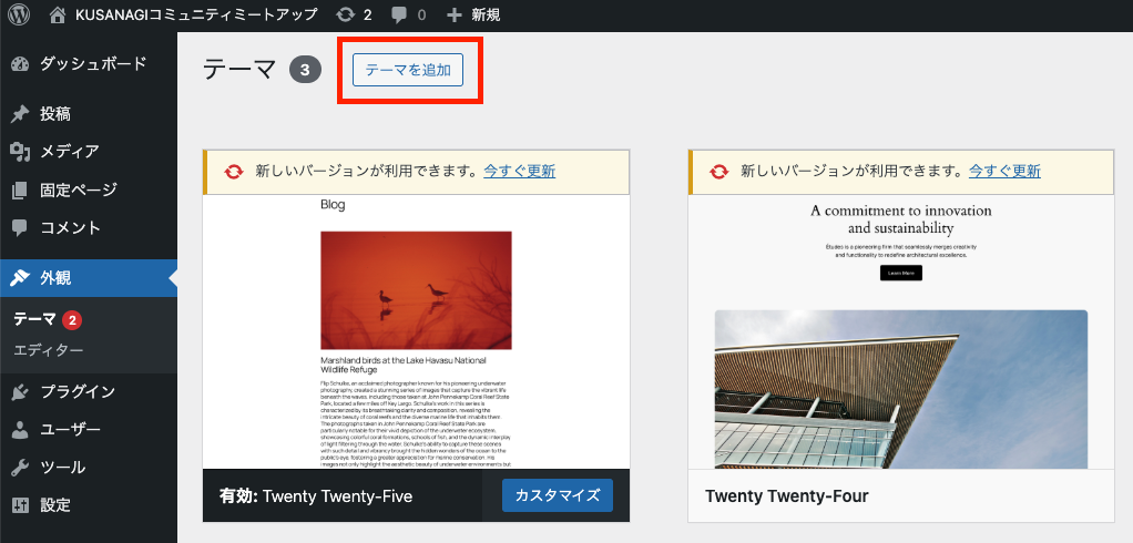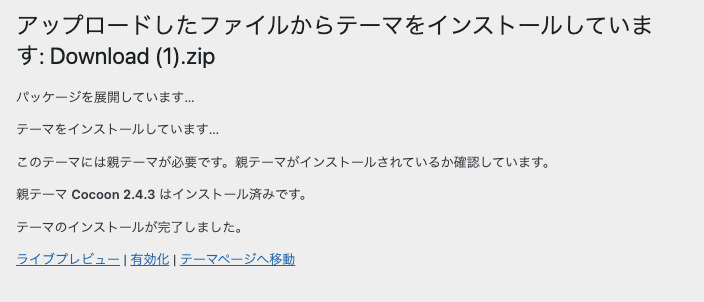 注意:テーマは必ず親テーマからインストールするようにしてください。