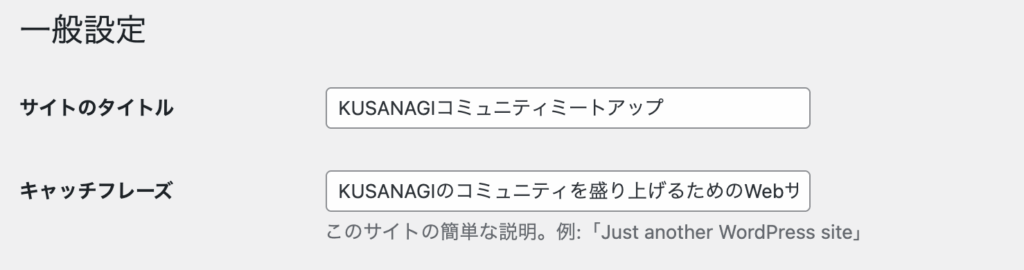 - キャッチフレーズ:サイトの説明文です。空白のままでも構いませんが、決まっているなら入力しておきます