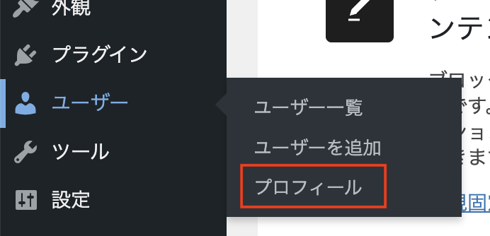 設定場所: 管理画面「ユーザー」→「プロフィール」